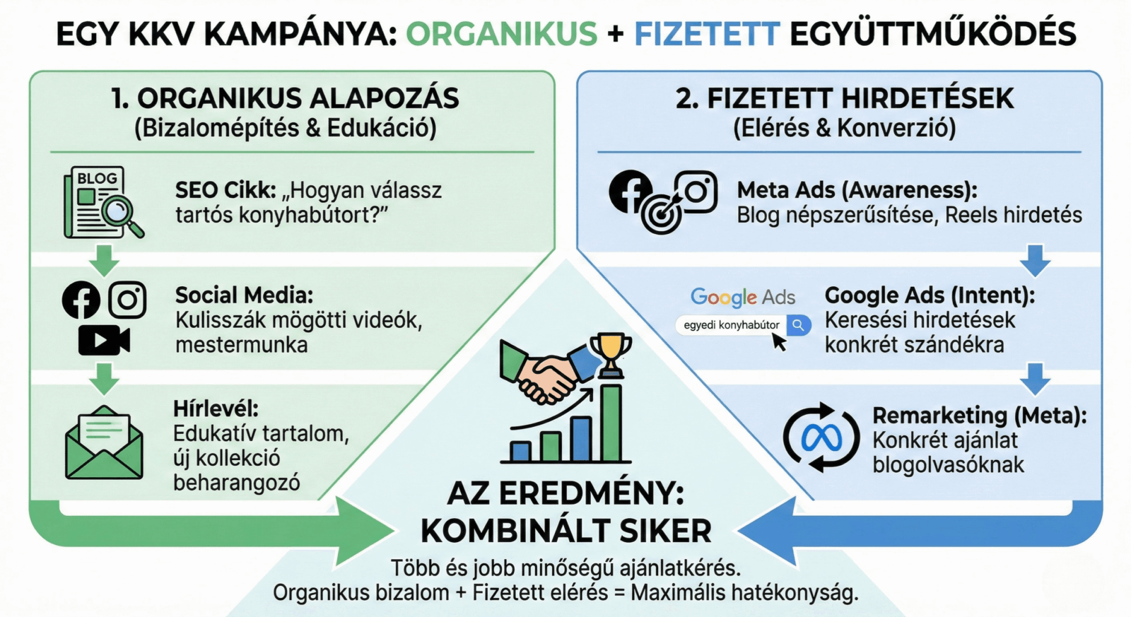 A konzisztens jelenlét bizalmat épít, az összehangolt kampányok jobban kihasználják a büdzsét, az adatvezérelt mérés pedig csatornák és eszközök között is pontos visszacsatolást ad.